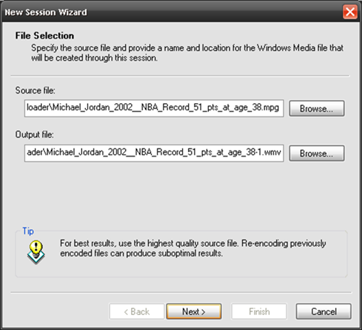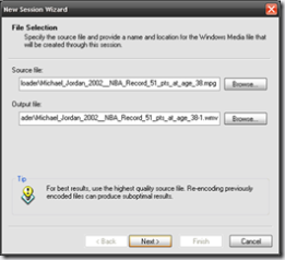 - After you have downloaded the video in the DVD (PAL) format we can start the business of conversion. Start WME and choose 'Convert a file' from the Wizard and click OK. Select the source file that you want to convert and hit next.
